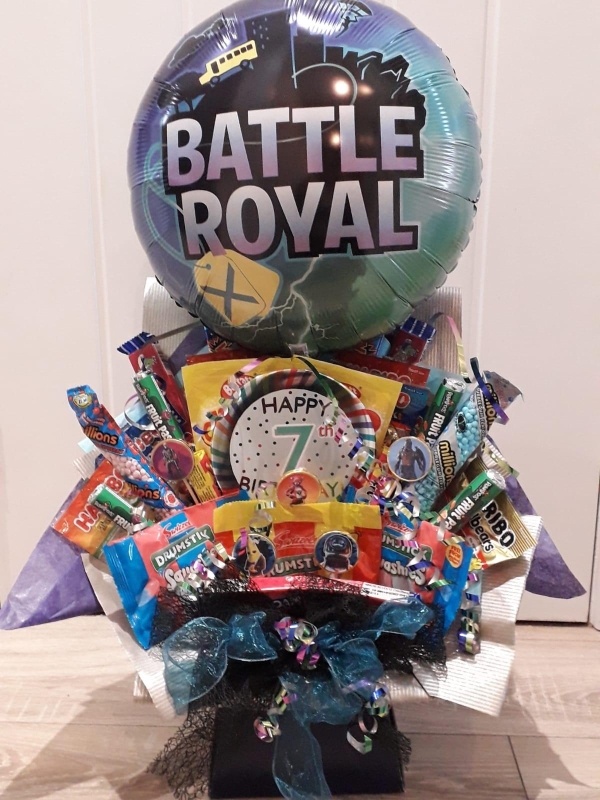 Kids Balloon Sweetie Bouquet - A perfect gift for those lovers of jelly and sugary sweets like millions, haribo, squashies, dip dab, fruit pastels, maow and fruit salad. This kids bouquet contains an 18" helium themed balloon. We can accommodate a range of themes however please state in the "message" part of the ordering system the character theme. If we cannot accommodate we will let you know in 24hours of the order being placed, however we do accommodate a large range of characters so this is an unlikely event.